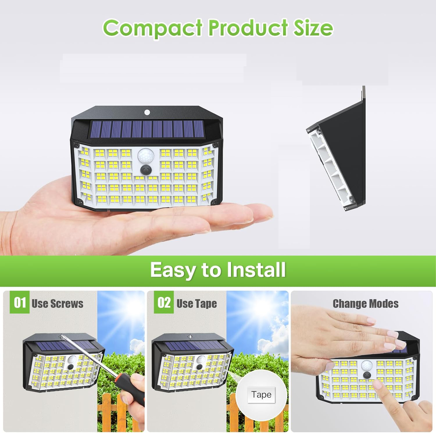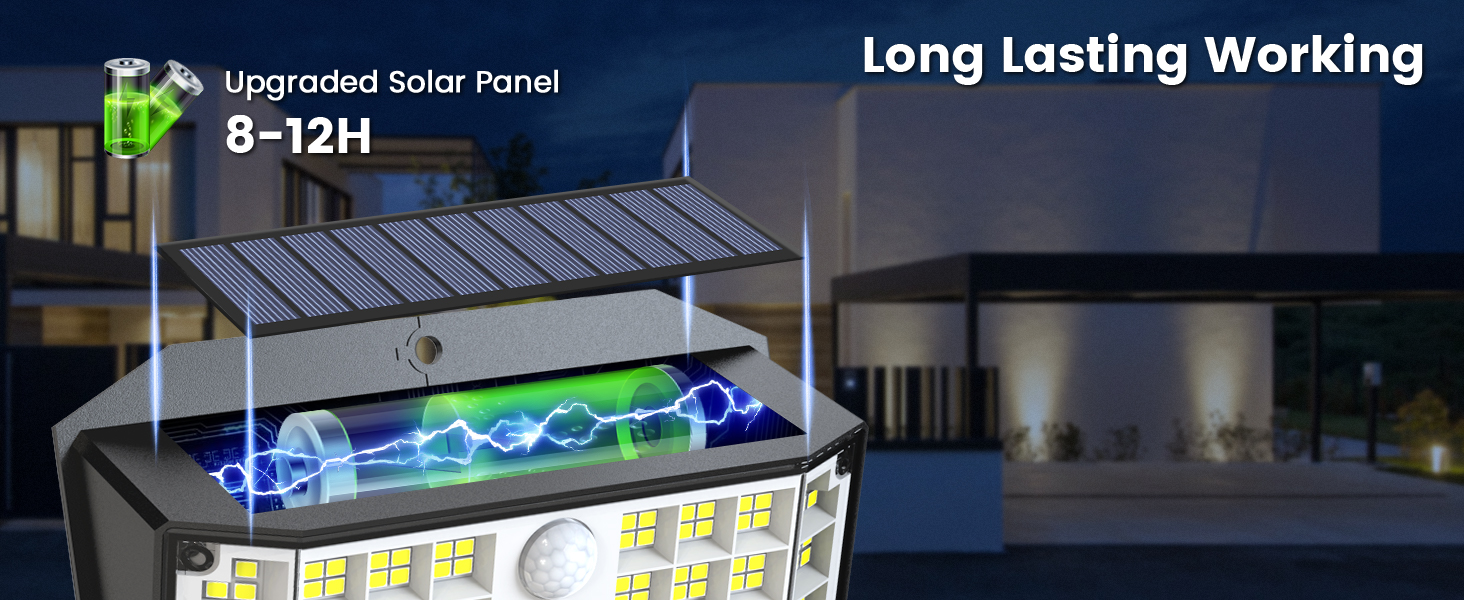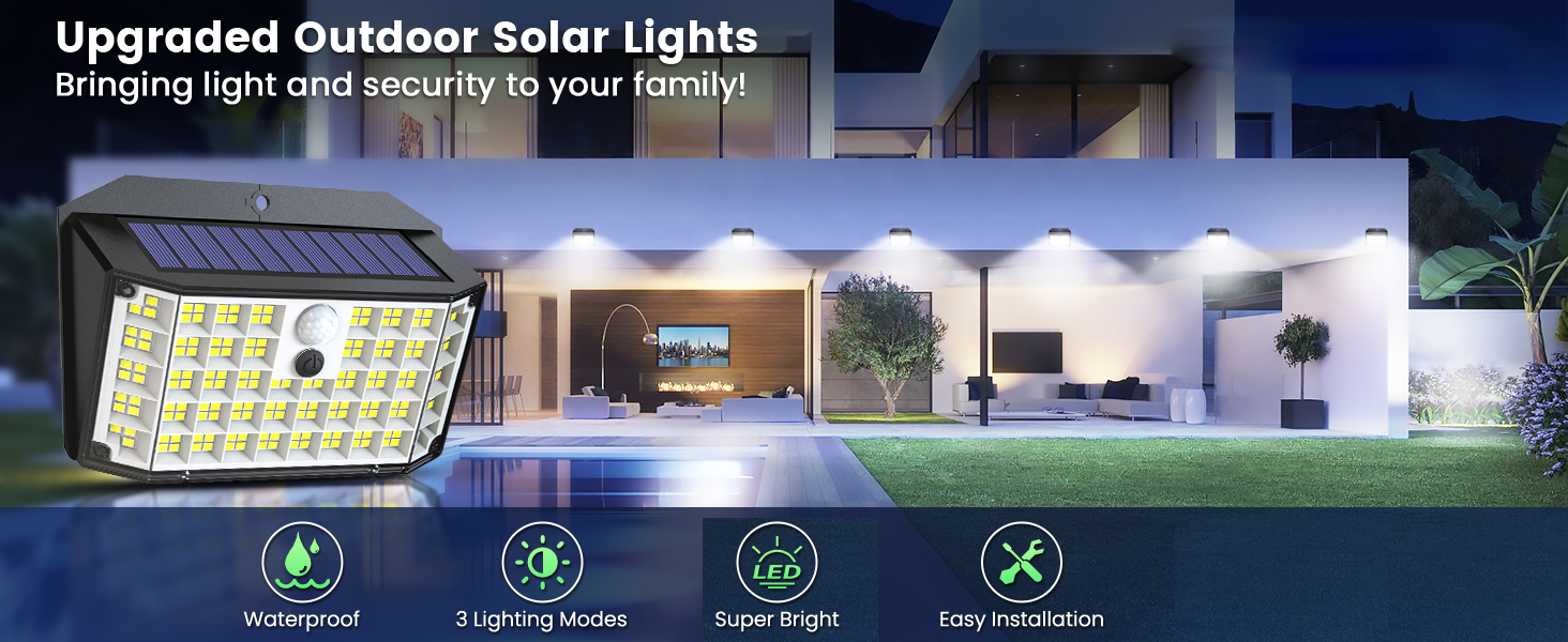 Light up your outdoor space with these powerful solar LED lights. Designed for security and convenience, they automatically turn on at night and provide bright illumination whenever motion is detected.